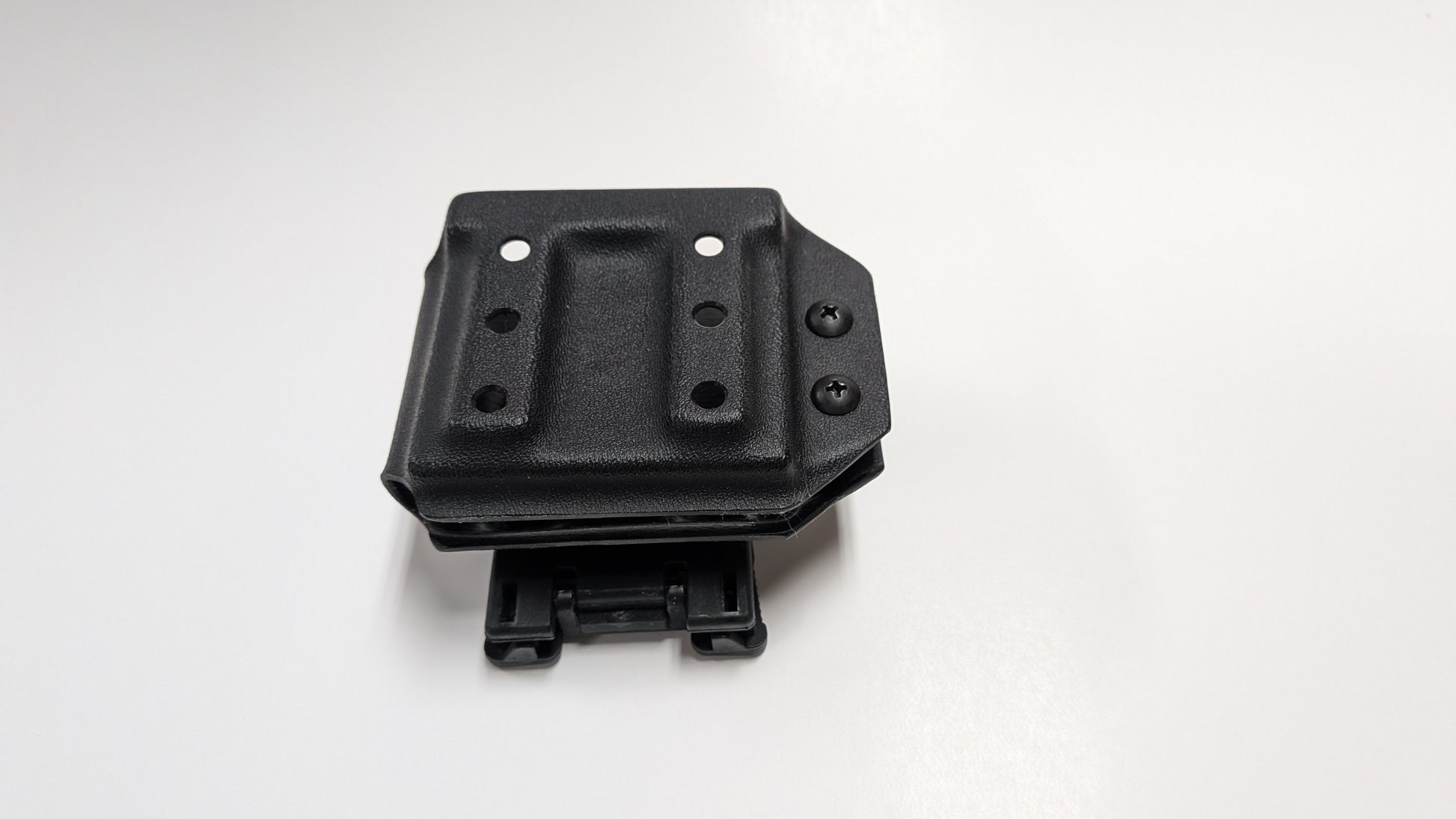 The AR-15 magazine carrier is made from durable Kydex, offering reliable use for both right and left hand users. It accommodates aluminum G.I. and Pmag's and features an adjustable magazine retention device for added security. Keep your magazines easily accessible and secure with this premium magazine carrier.